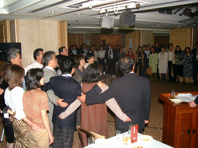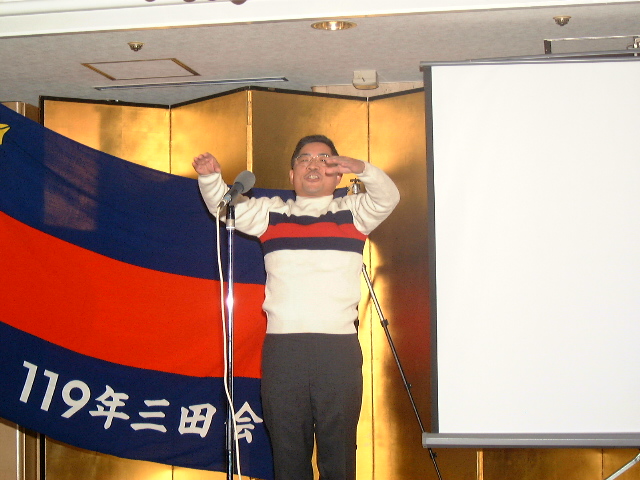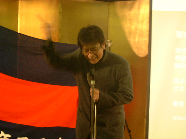 | 66.下田リーダー長 登場 | 67.肩を組んで、慶應讃歌〜 ここ をクリックすると音が出ます。 音源は工学部田久君作成 |