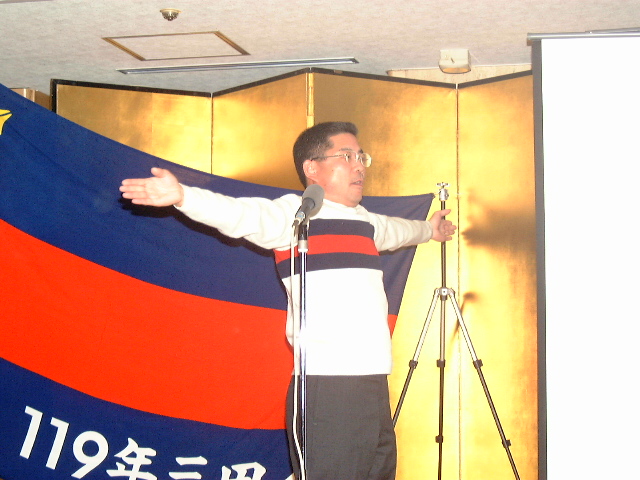 | 63.塾員注目〜! 長谷川 | 64.元気よく、若き〜血! ここ をクリックすると音が出ます。 音源は工学部田久君作成 |